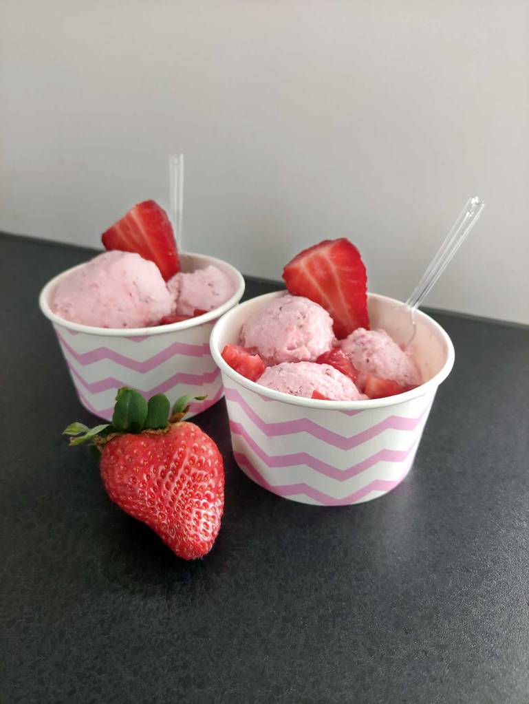 FAZIT: Das Eis ist nicht so schön cremig geworden sondern eher brüchig. Da ich die doppelte Menge genommen habe, hat das Gefrieren vom Eis auch länger gedauert.