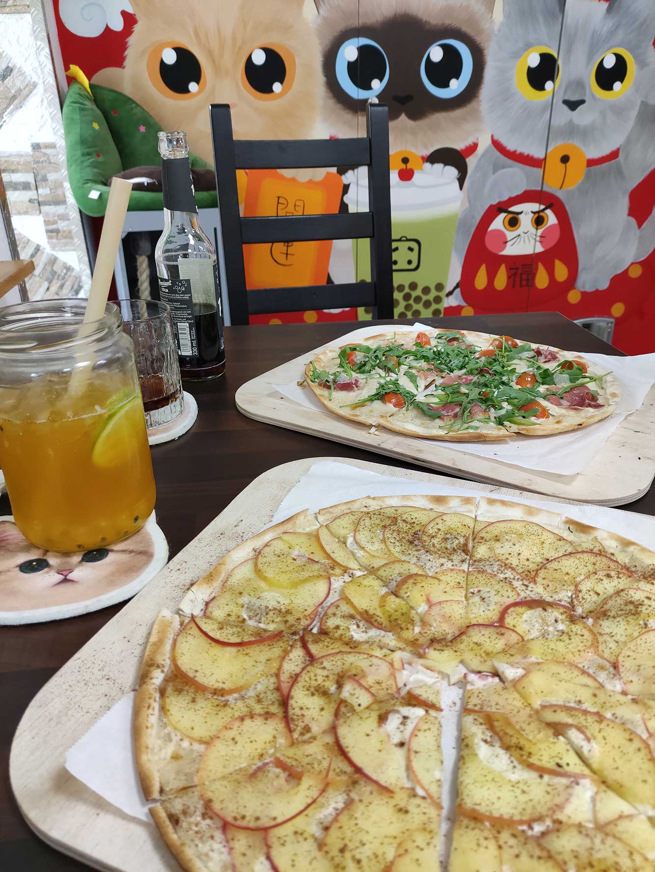 Ich habe das Katzencafe Happy Cats in Stuttgart besucht. Das Cafe ist wirklich sehr schön eingerichtet. Bestellt habe ich einen süßen Flammkuchen mit Äpfeln und Zimt und einen Maracuja Bubble Tea.
